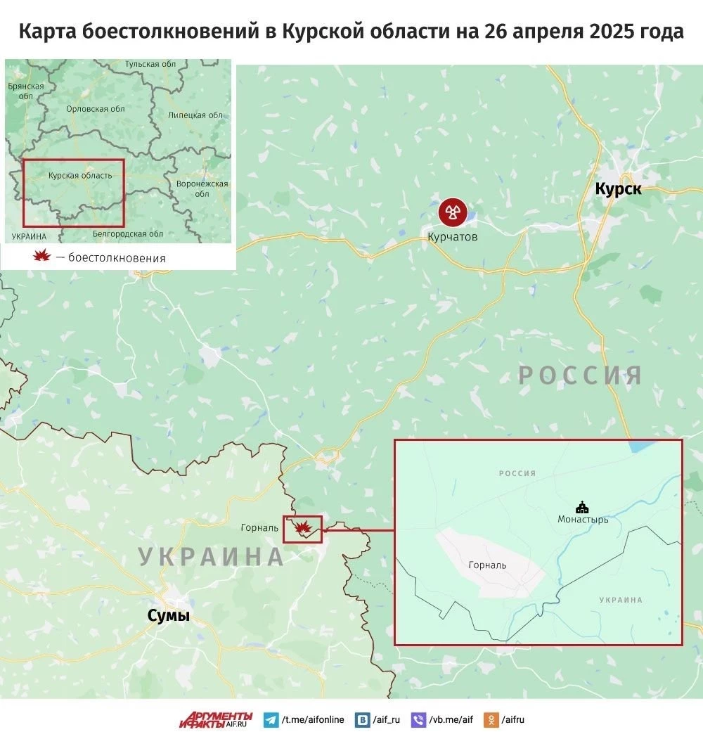 Свежая карта боевых действий в Курской области. Данные на сегодняшний день, 26.04.2025