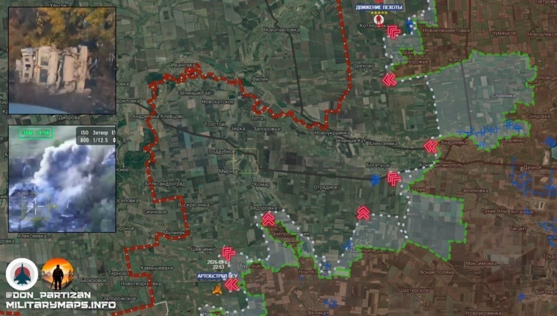 ВС РФ закрепились в центре населённого пункта Берёзовкаа. Штурмуются северные посадки — продвижение ведётся в сторону Новой Полтавки, нависание над следующим рубежом обороны ВСУ.