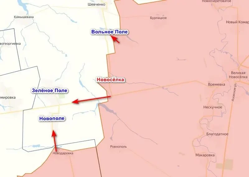По данным паблика, к активным штурмовым действиям ВС РФ приступили еще 3 мая, продвинувшись в районах населенных пунктов Вольное Поле, Зеленое Поле, Новоселка и Новополе. По данным паблика, ситуация «тяжелая», удерживать позиции становится все труднее.