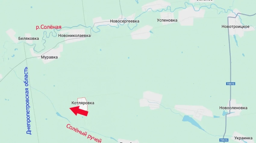 Чтобы выйти к западной границе Донецкой Народной Республики на этом участке, российским войскам осталось пересечь ручей Солёный, который является притоком одноимённой реки, протекающей как в ДНР, так и на Днепропетровщине.