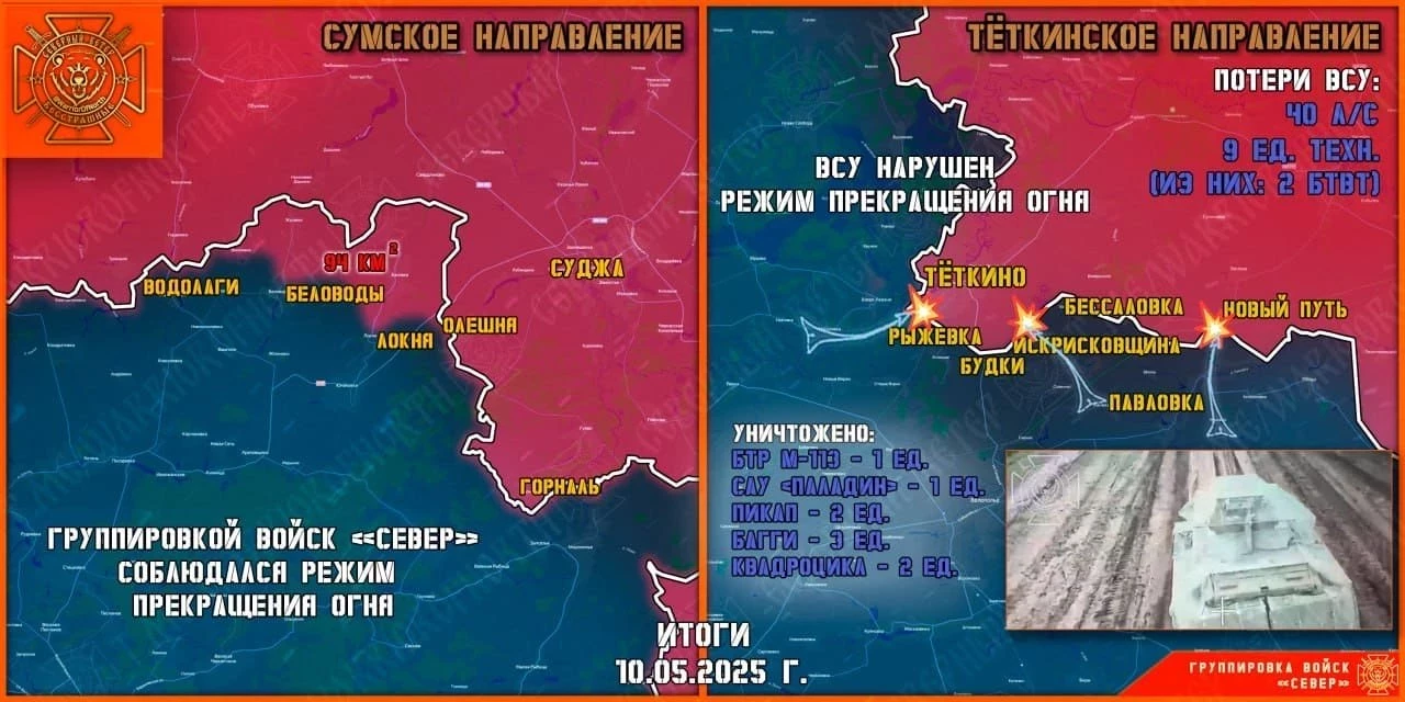 В Курской области не смолкают ожесточённые бои в районе Тёткино: свежие данные на 11.05.2025