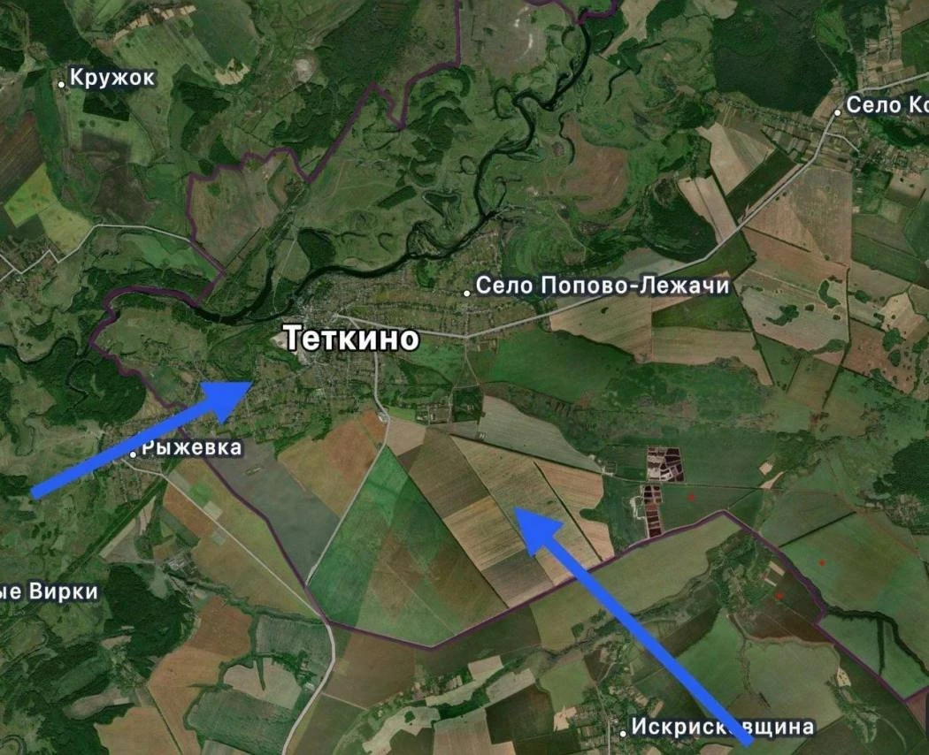 ВС РФ нанесли удар по группе украинских военнослужащих, пытавшихся проникнуть в поселок Теткино Курской области, сообщил военный корреспондент Борис Рожин в своём Telegram-канале.