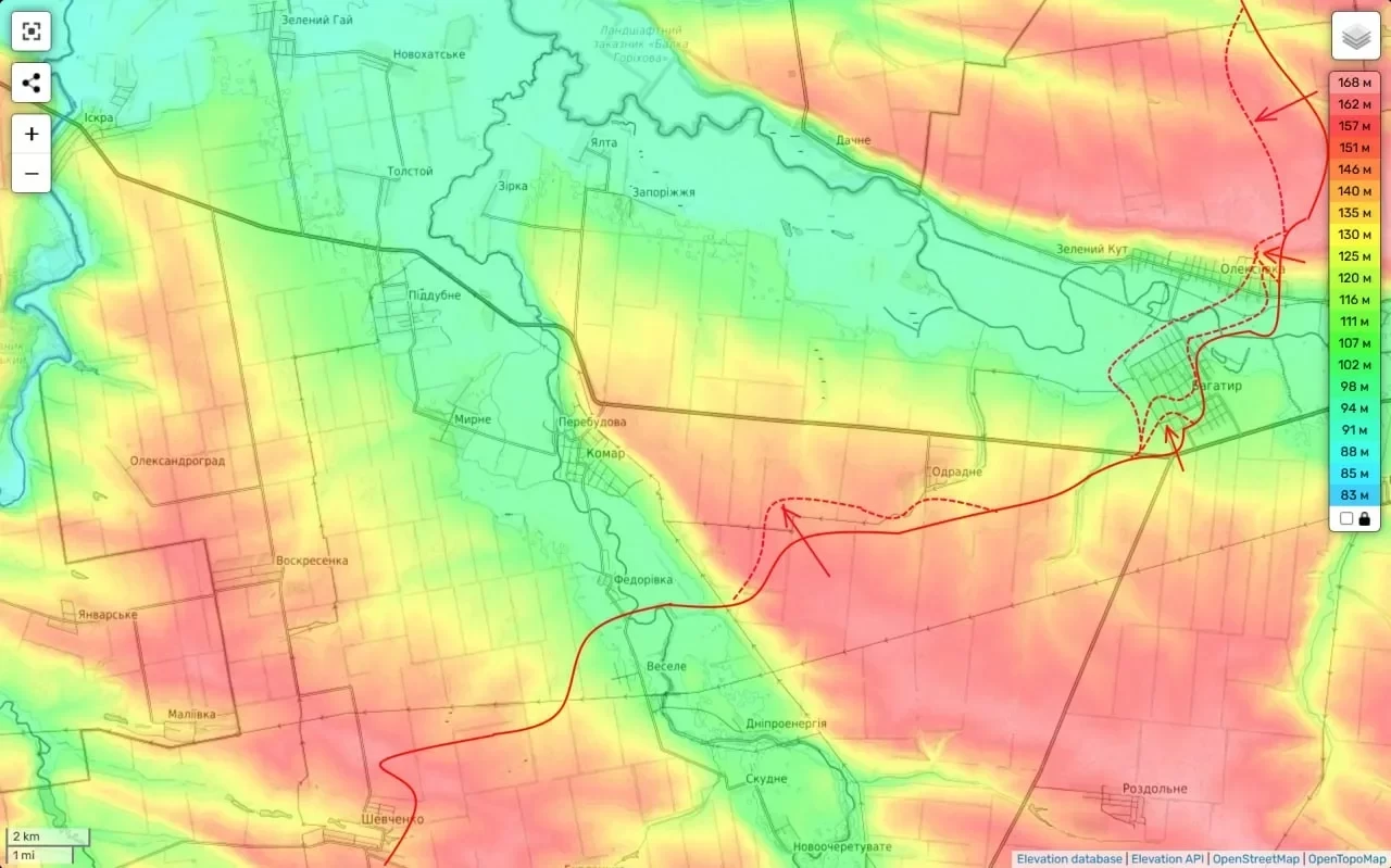 «При этом до самой Новопавловки рукой подать, а административная граница Днепропетровской области практически как на ладони, видна невооруженным глазом», - отметил он.