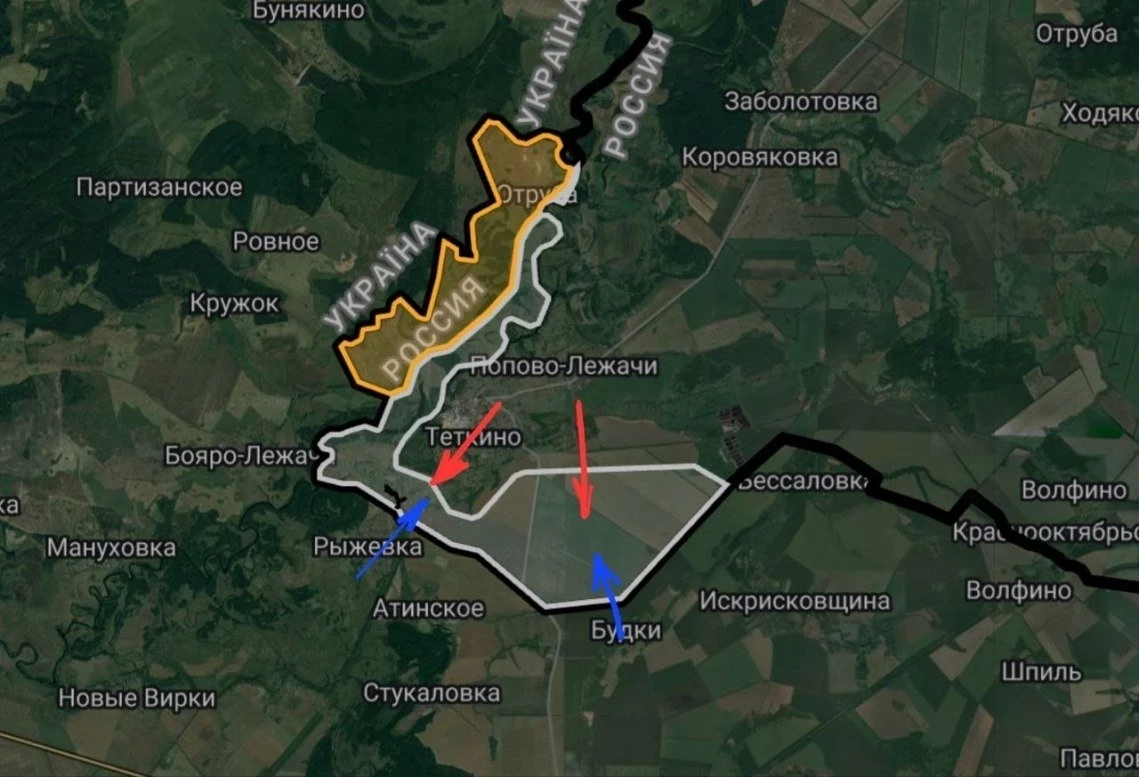 Telegram-канал Colonelcassad пишет, что ВСУ не выводят штурмовые группы из приграничных сел Рыжевка и Атинское, находящихся в Сумской области, поскольку командование армии противника не оставляло попыток прорваться вглубь Курщины.