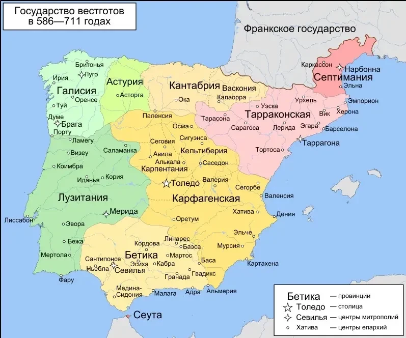 С середины VI века столицей вестготов стал Толедо, а христианство они поначалу приняли в его арианском варианте.