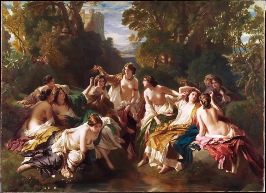 Франц Ксавер Винтерхальтер. «Король Родерих следит из кустов за купанием Флоринды ла Кавы, дочери графа Юлиана»