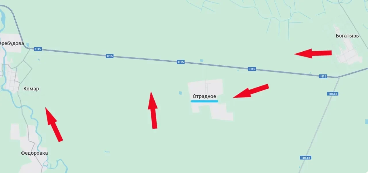 На этом участке фронта ВС РФ между Отрадным и Комаром сформировали выступ, осуществляя охват первого из указанных населённых пунктов.