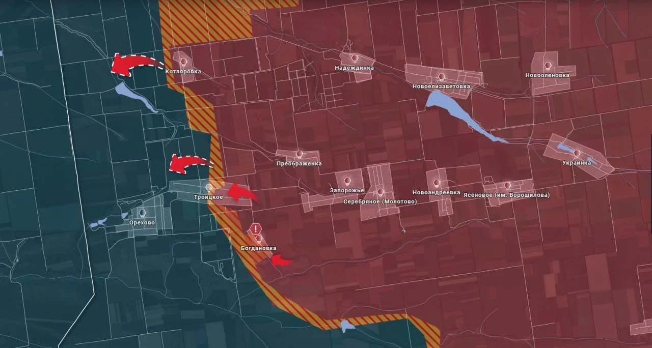 На Покровском участке ВСУ предпринимают попытки сдержать атаки ВС РФ, которые продвигаются по линии Запорожье-Троицкое-Орехово. Выше по фронту, на левом фланге охвата Покровска – тяжёлые позиционные бои без существенных перемен. На правом – такое же тяжёлое сражение в районе Малиновки.