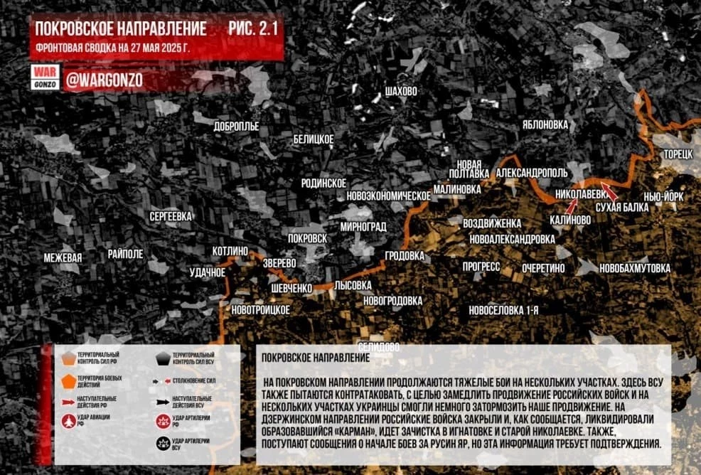 Последние новости » Эксклюзив » ВС РФ ведут ожесточённые бои на нескольких участках на Покровском направлении: свежие данные на 27.05.2025