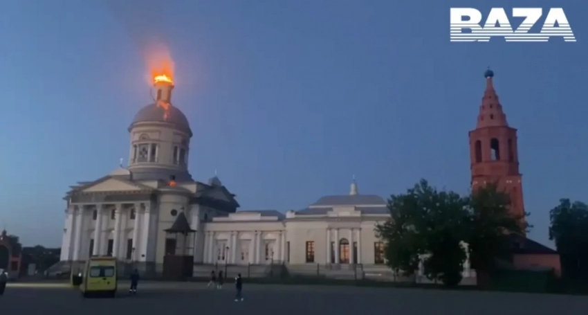 Купол Свято-Никольского собора в Епифани, Тульская область, в который попал украинский БПЛА-камикадзе. Изображение: ТГ-канал Baza.