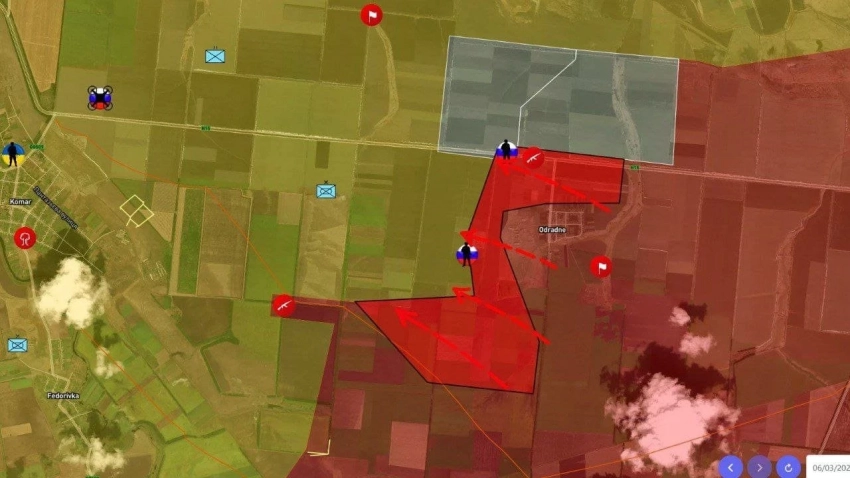 "На том участке, где продвигаются сейчас наши военнослужащие, расстояние до Сум порядка 20 километров. И как раз-таки вырисовывается такой клин, можно сказать, из тех населенных пунктов, которые мы освободили уже на территории Сумской области. И сейчас основное направление как раз-таки идет к трассе, которая соединяет Сумы и Суджу", - проинформировал Разин.