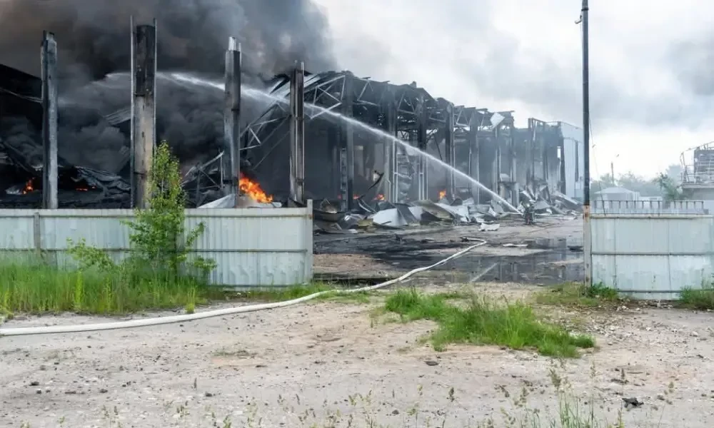 Показаны кадры мощной детонации в результате удара ВС РФ по промпредприятию в Тернополе