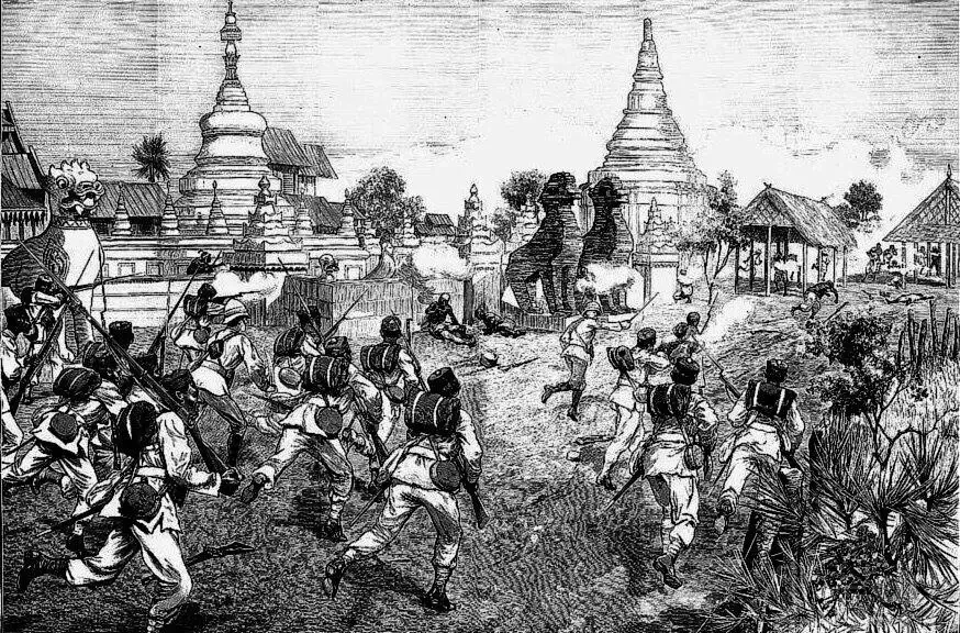 А то, что Франция намерена со всеми удобствами расположиться во Вьетнаме, было уже видно без очков. Французские миссионеры окучивали местных королей по полной программе уже в конце XVIII века, причём их активность даже вызвала резню христиан, после того как потомки Астерикса с Обеликсом прервались на Наполеоновские войны. А что у нас там лежит между Индией и Вьетнамом? Бинго — Бирма! В общем, причины войны были примерно такие же, что потянули англичан в Афганистан — желание превентивно обезопасить «свою прелесть». Но, повод! Право, за такое было стыдно даже британским парламентариям, которые свой стыд держали в очень хорошо запирающемся сейфе. Дело было так...