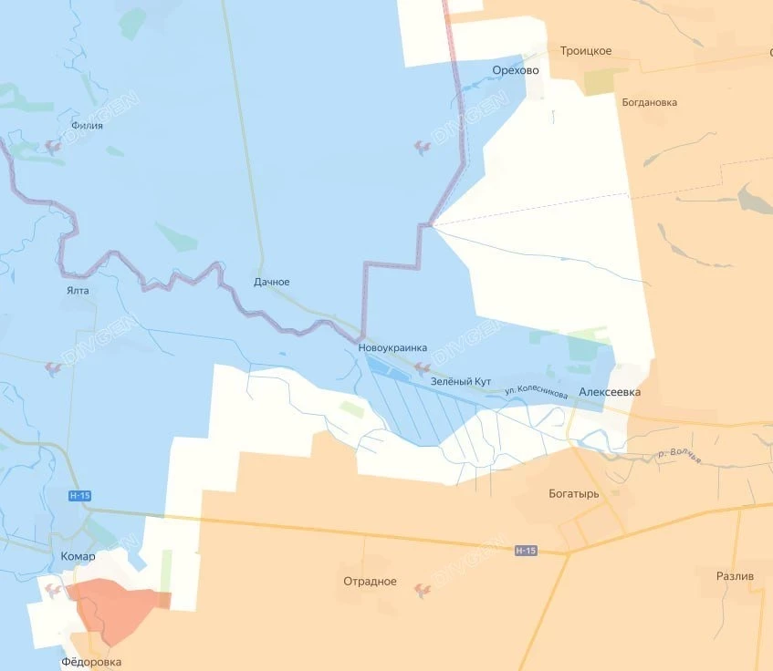 На Новопавловском направлении в районе Алексеевки у ВСУ нарастают проблемы: наши подразделения продавливают позиции с северо-востока, ведут бои за высоты севернее Алексеевки и Зелёного Кута. Один из восточных опорников ВСУ уже перешёл под наш контроль. Севернее Алексеевки и юго-западнее Богдановки противник оттеснён почти к границе Днепропетровской области. Южнее Волчьей наши части продвигаются в сторону Новоукраинки, Дачного и атакуют в направлении Перебудовы. В Комаре штурмовые группы ведут бои у центра, на улицах Франка и Школьной, сообщает военкор Юрий Котенок в своём Telegram-канале.