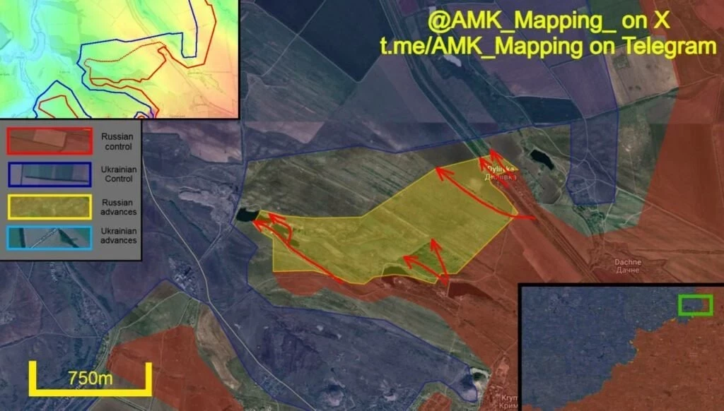 На Торецком направлении российские войска продвинулись на северо-запад вдоль железнодорожной линии и завершили освобождение села Дылевка (южного). На западе удалось взять лесополосу и пересечь водохранилище в низине, после чего зашли небольшой лес, сообщает военкор Евгений Лисицын в своём Telegram-канале.