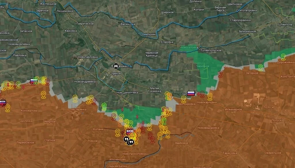 На Покровско-Новопавловском направлении российские войска ведут штурмовые действия в направлении Коптево, в Мирном, а также южнее Новоэкономического. Также продолжаются интенсивные боестолкновения в направлении Новониколаевки, в центральной части Новосергеевки и на северо-восточной и восточной окраинах Орехово, сообщает Telegram-канал "БелВПО".