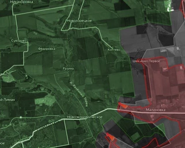 На Константиновском направлении российские войска давят в Дачном и Дылеевке, продвинулись севернее Романовки и Зари. ВС РФ расширили контроль территории в Яблоневке в районе Попового Яра и Полтавки.