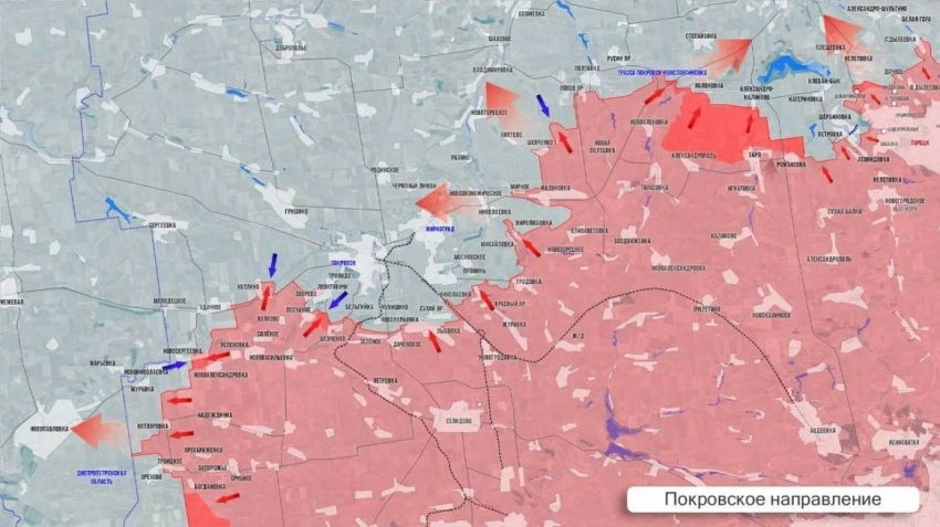 Вооружённые силы Российской Федерации (ВС РФ) продолжают расширять зону контроля на Покровском направлении. В частности, накануне в ходе ожесточённых боевых действий был освобождён населённый пункт Орехово, а также пересечена граница с Днепропетровской областью. Планомерно продолжается расширение плацдарма и хвата самого Покровска с разных направлений.