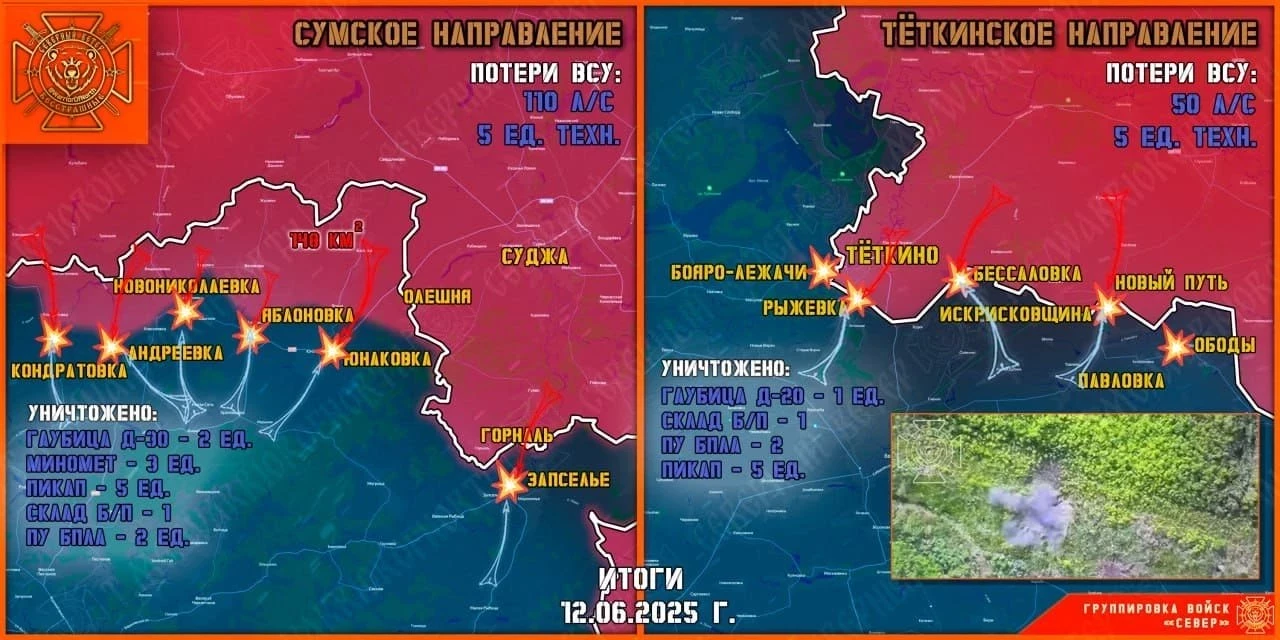 Командование ВСУ не оставляет попыток просочиться вглубь Курской области на Тёткинском и Глушковском направлениях. Северяне отразили все атаки противника, оккупанты с потерями бежали вглубь Сумской области.