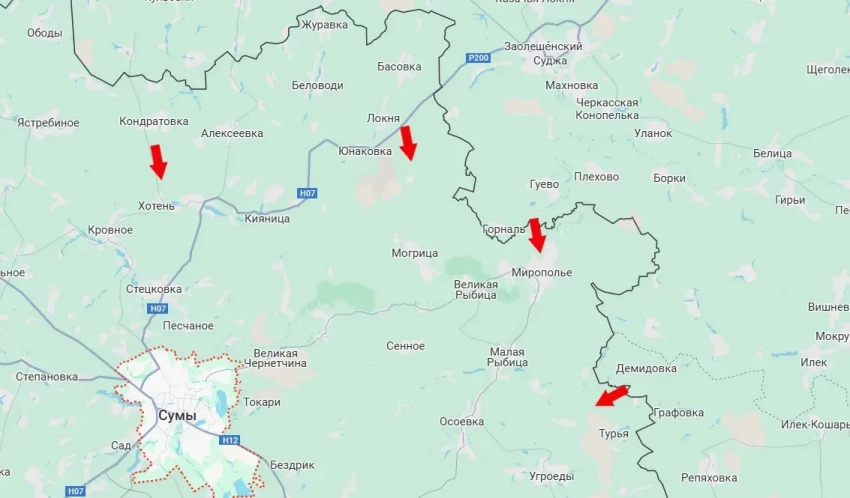 Находит своё подтверждение информация о том, что российская армия вошла в Сумскую область ещё на одном участке. Речь идёт об участке территории между курским селом Горналь и сумской Александрией – в районе рек Псёл и Удава.