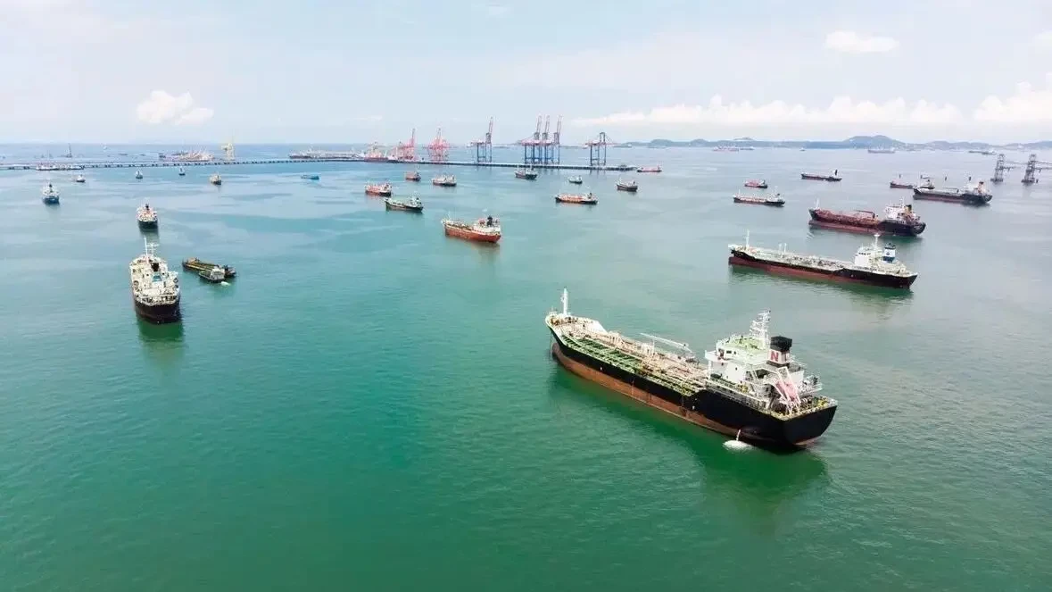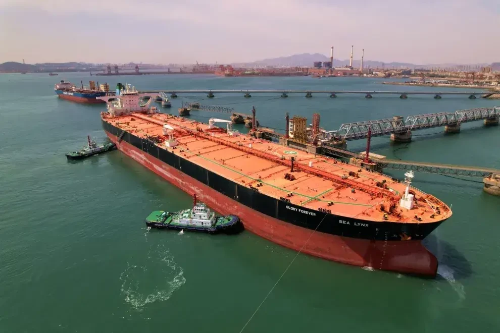 Танкер, перевозящий нефть из Объединенных Арабских Эмиратов, готовится к разгрузке на терминале в Циндао, Китай.