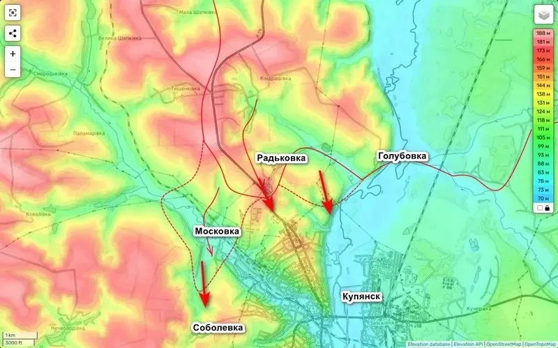 Вообще же, за последние сутки наши продвинулись в районах Малой Шапковки, Кондрашовки, Радьковки, Голубовки и Петропавловки Харьковской области. Подтверждают это и другие российские ресурсы. Также продолжается охват Купянска с западного направления, где после взятия Московки (Мирное — укр.) российские войска продвигаются на Соболевку. Фактически на сегодняшний день Купянск находится в полукольце, которое может превратиться в полноценный котел.