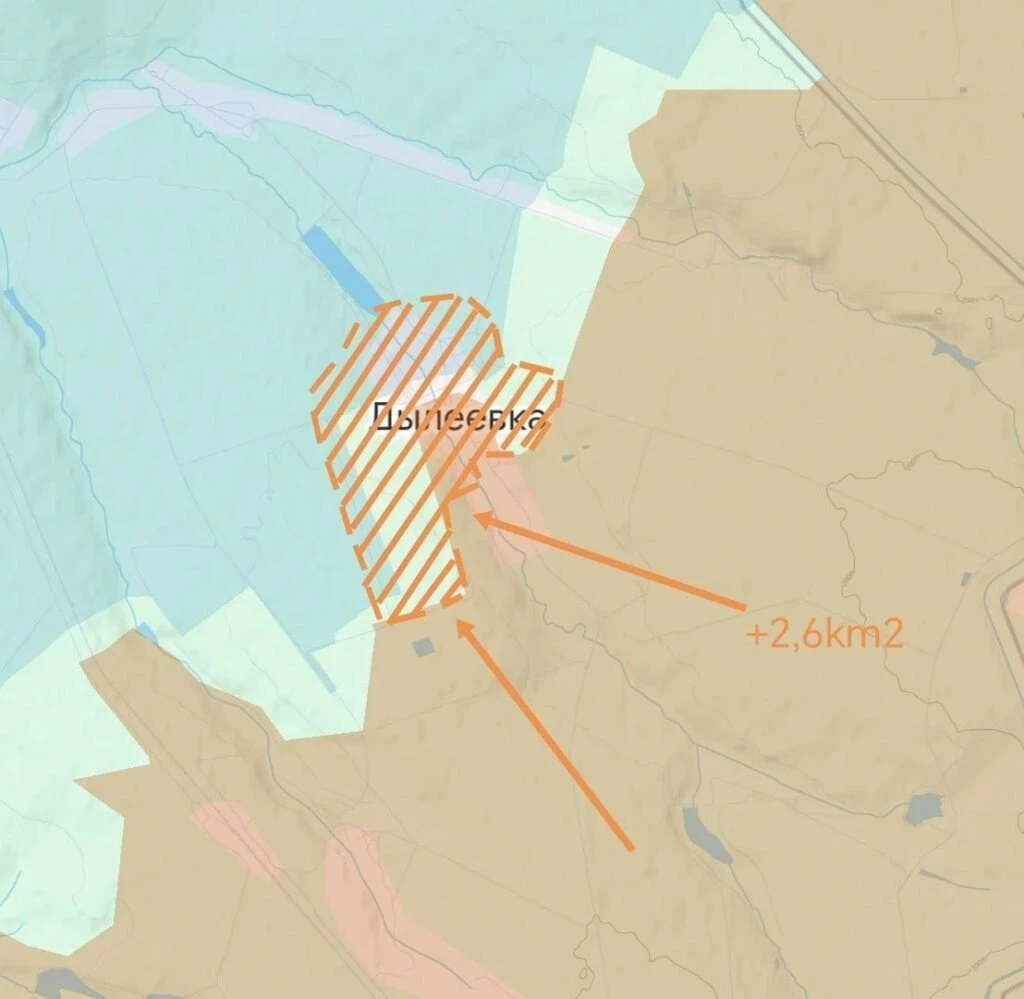 Под контроль ВС РФ перешла Дылеевка, а также участок местности в районе Нелиповки и Романовки.