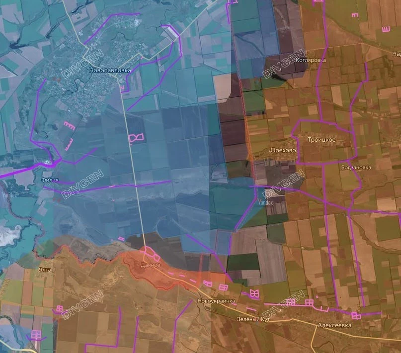 На Запорожском участке позиционные бои по всему фронту. В Каменском ВС РФ зачистили южную часть села и перешли через мост, где подняли триколор. В Малой Токмачке ВС РФ смогли продвинуться в восточной части. Есть продвижение и в Малиновке, где бои идут в центральной части села.