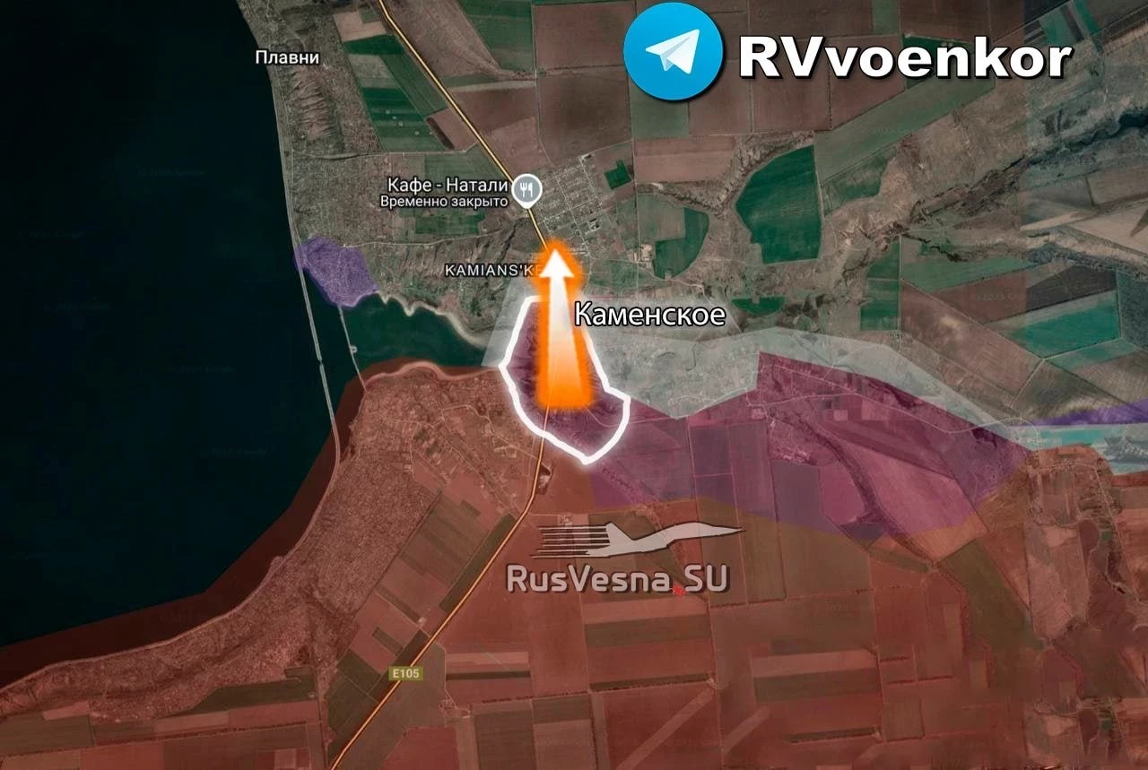 По информации военкоров, с учетом пересохшего дна бывшего Каховского водохранилища и в районе устья реки Янчекрак, ВС России могут предпринять атаки с юго-запада Каменского в направлении северо-западной части и района дач.