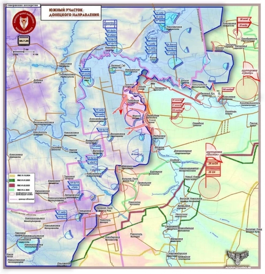 На Запорожском направлении продолжается зачистка Каменского, наши десантники громят врага. Российские силы расширяют зону контроля вдоль северного берега Янчекрака. Успехи зафиксированы северо-восточнее Степового, ведутся позиционные бои у Щербаков.