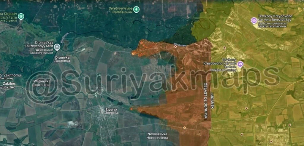 На Константиновском направлении российские войска продвинулись севернее Часова Яра, отмечаются интенсивные боестолкновения в районе Марково и Новомарково. ВС РФ ведут штурмовые действия в восточной части Белой Горы, расширили контроль территории в мкр «Забалка» Торецка, а также продвинулись в центральной части Яблоневки. Продолжаются встречные бои севернее и южнее Яблоневки, в направлении Александро-Калиново и в районе Попова Яра.