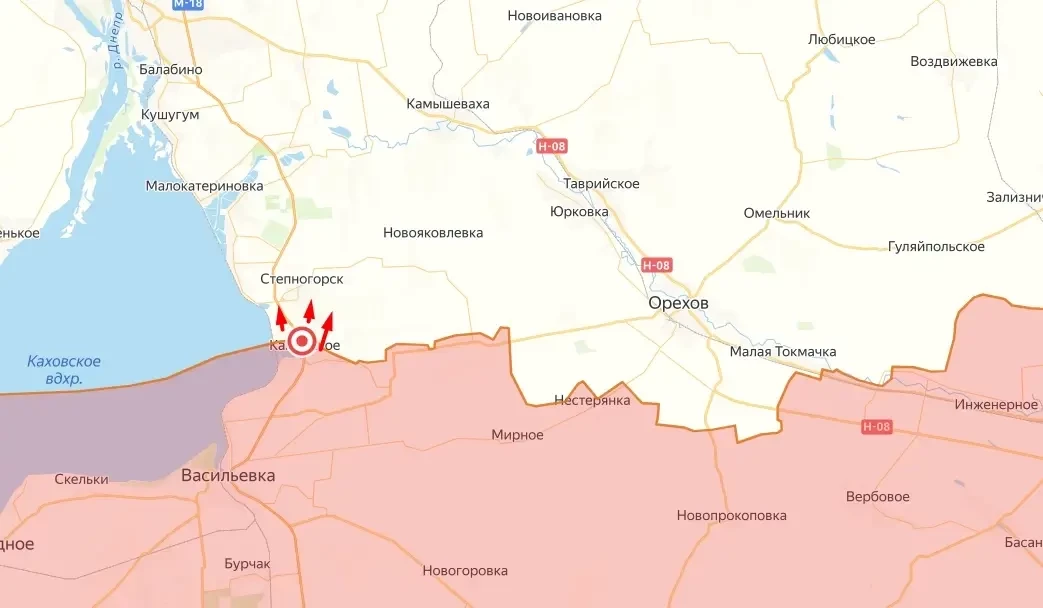 Данное село расположено западнее Орехова. При этом следующим населённым пунктом, к освобождению которого уже в ближайшее время могут приступить штурмовые подразделения ВС РФ является расположенный севернее Степногорск.