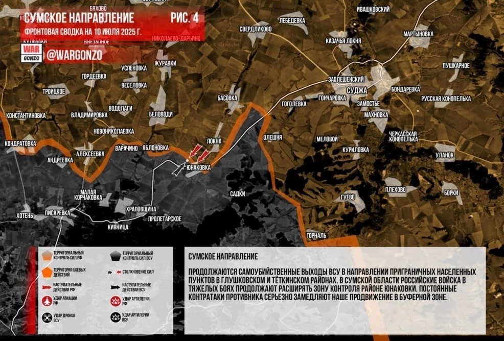Карта боевых действий на Украине. Ситуация в зоне СВО на 10.07.2025
