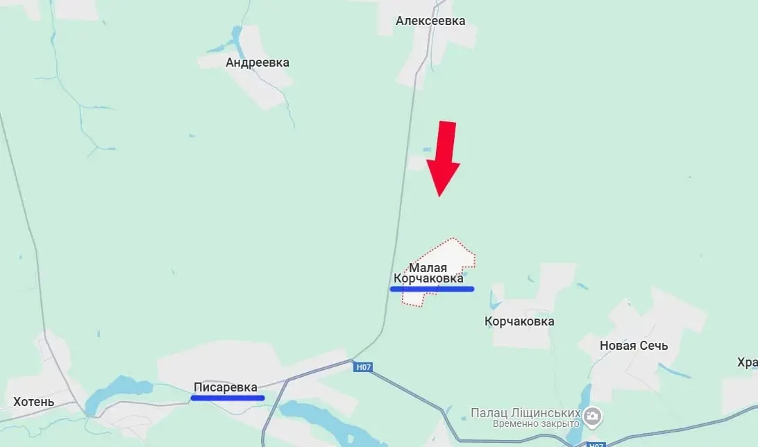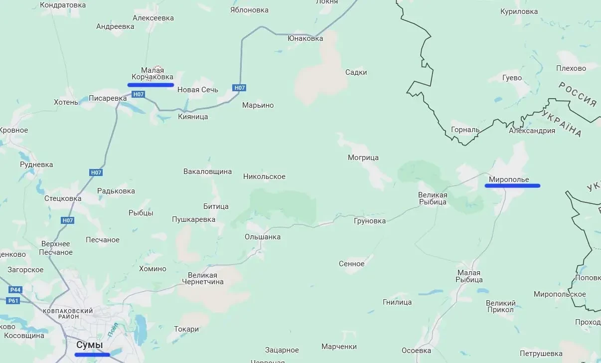 Малая Корчаковка расположена всего в километре от важной развилки дорог – к юго-западу участок ведёт к областному центру Сумы. Причём до северной окраины Сум от этого села около 15 км. Таким образом, российские войска подошли к Сумам на такое расстояние, которого не было с февраля-марта 2022 года. Напомним, что тогда наши войска подошли к Сумам, взяв окрестности города фактически без боя и после - с боями - войдя в город. Однако после череды переговоров в Белоруссии и Турции территорию Сумской области ВС РФ покинули.