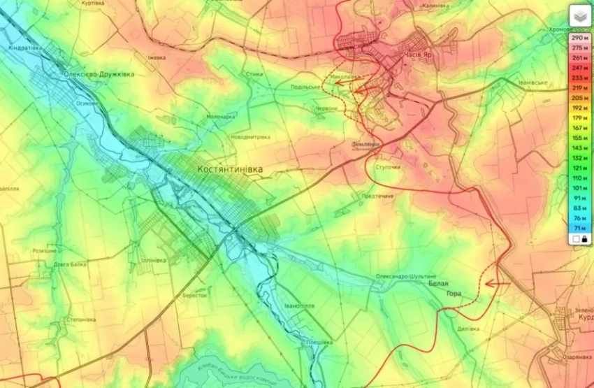 Это значительно упростит дальнейшее продвижение на север, которое уже началось в районе Русина Яра с хорошими успехами. Также начались атакующие действия в районе Попова Яра и Полтавки, где также отмечены тактические успехи. Развитие наступления на север позволит полностью отрезать Константиновскую группировку от западного снабжения. В этом районе крайне мало населённых пунктов, за которые мог бы держаться противник, что открывает путь к Алексеево-Дружковке и Дружковке, что сделает ситуацию для ВСУ здесь катастрофической. 8-я армия демонстрирует значительные успехи на этом участке.