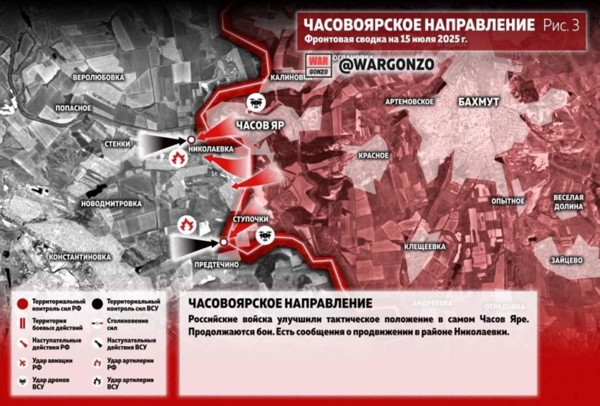 Карта боевых действий на Украине. Ситуация в зоне СВО на 15.07.2025