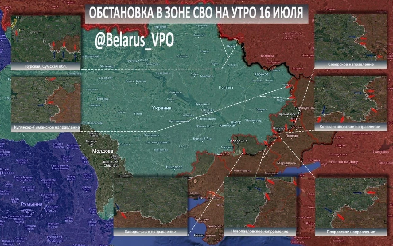 N4k предлагает ознакомиться с последними новостями из зоны проведения СВО, а также публикует свежую карту боевых действий, актуальную на 16.07.2025.