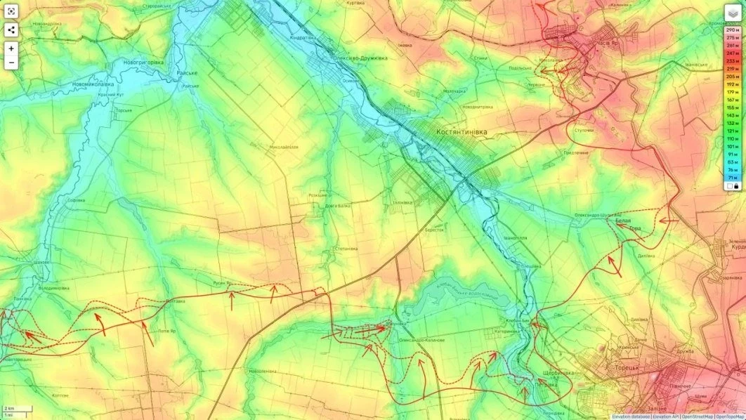 Подоляка также сообщает об успехах ВС РФ на Констатиновском направлении. Движется на север фронт в районе Полтавки и Русина Яра, а после выхода наших частей через Яблуновку в Олександро-Клиново началась агония группировки ВСУ южнее Клебан-Быцкого водохранилища.