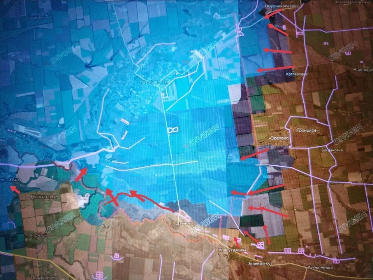 На юге Угледарского фронта ВС РФ продавливают оборону ВСУ на южных подступах к Темировке и по линии Камышеваха-Александровград. Также стараются создать сплошную зону контроля к югу и востоку от Зелёного Гая. Продвигаются в «кармане» между Зелёным Кутом и Орехово.