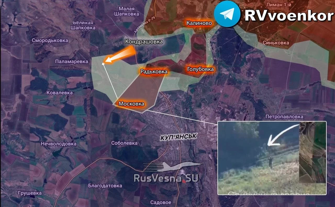 «Обстановка на Купянском участке фронта становится все более напряженной. Российские солдаты были замечены в лесополосах восточнее Кондрашевки», - сообщают украинские военные обозреватели.