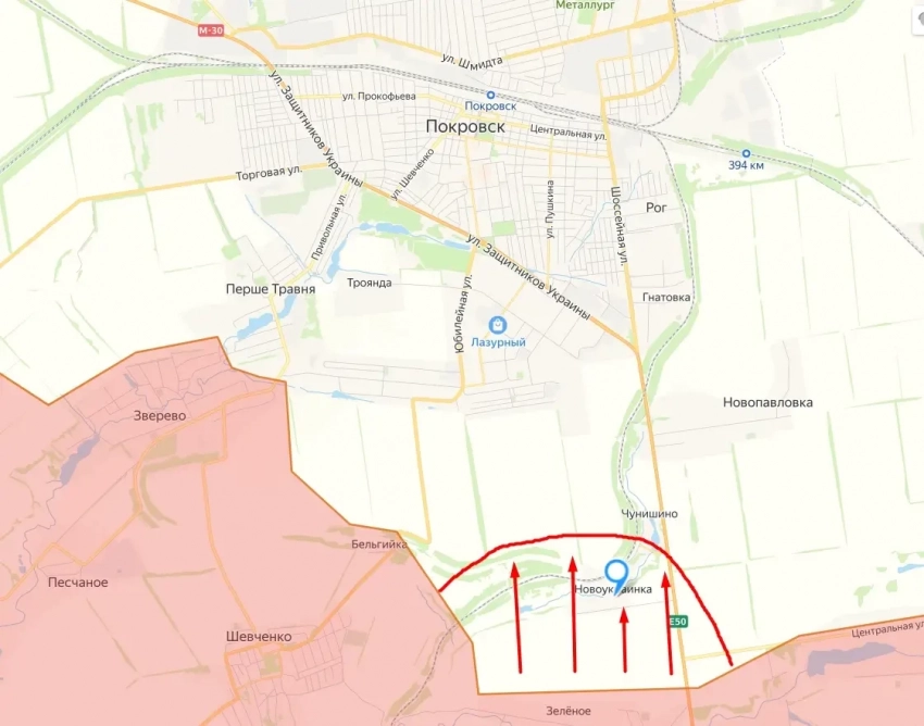 Так, согласно сообщению Минобороны РФ, бойцы из группировки «Центр» в ходе стремительного наступления освободили село Новоукраинка Покровской городской общины. Населённый пункт находится южнее районного центра.