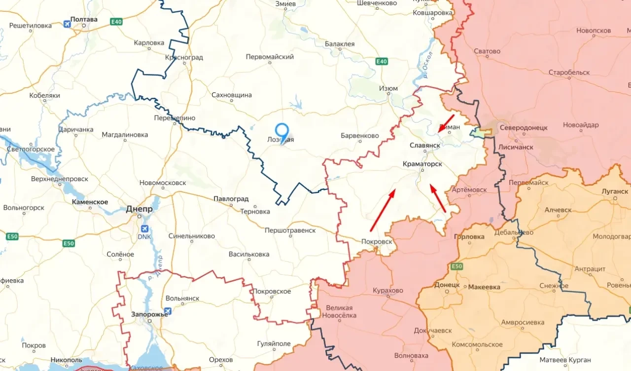 Наши военные продвигаются к цели сразу с нескольких направлений – Лиманского (северо-восточнее), Константиновского (юго-восточнее) и Покровского (юго-западнее). Недоступным для российских подразделений остаётся только западное и северо-западное направление, где вышеупомянутая агломерация граничит с югом Харьковской области.