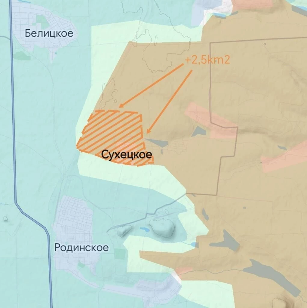 Российские войска продвинулись в Карповке и её окрестностях. Помимо закрепления в Колодезях, где ВСУ все еще пытаются контратаковать, наши войска продвинулись южнее от Зеленой Долины и ведут бои в балках северо-восточнее Шандриголово.