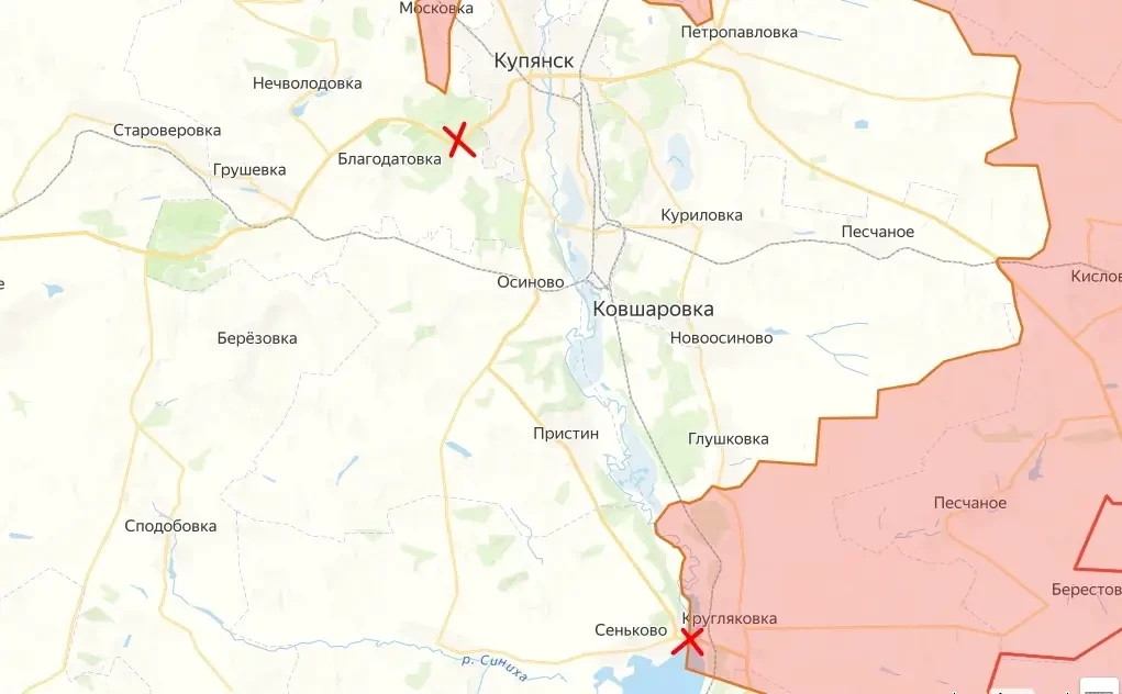Трасса, проходящая через Ковшаровку с юга, уже перерезана нашими военными в районе Кругляковки-Сеньково. Таким образом, купянский гарнизон ВСУ фактически остался без снабжения.
