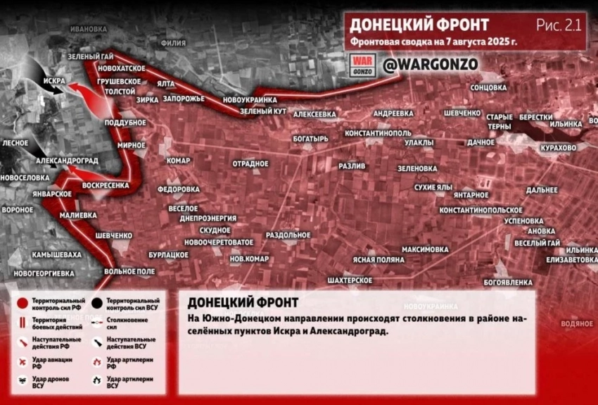 Карта боевых действий на Украине. Обстановка в зоне СВО на 07.08.2025