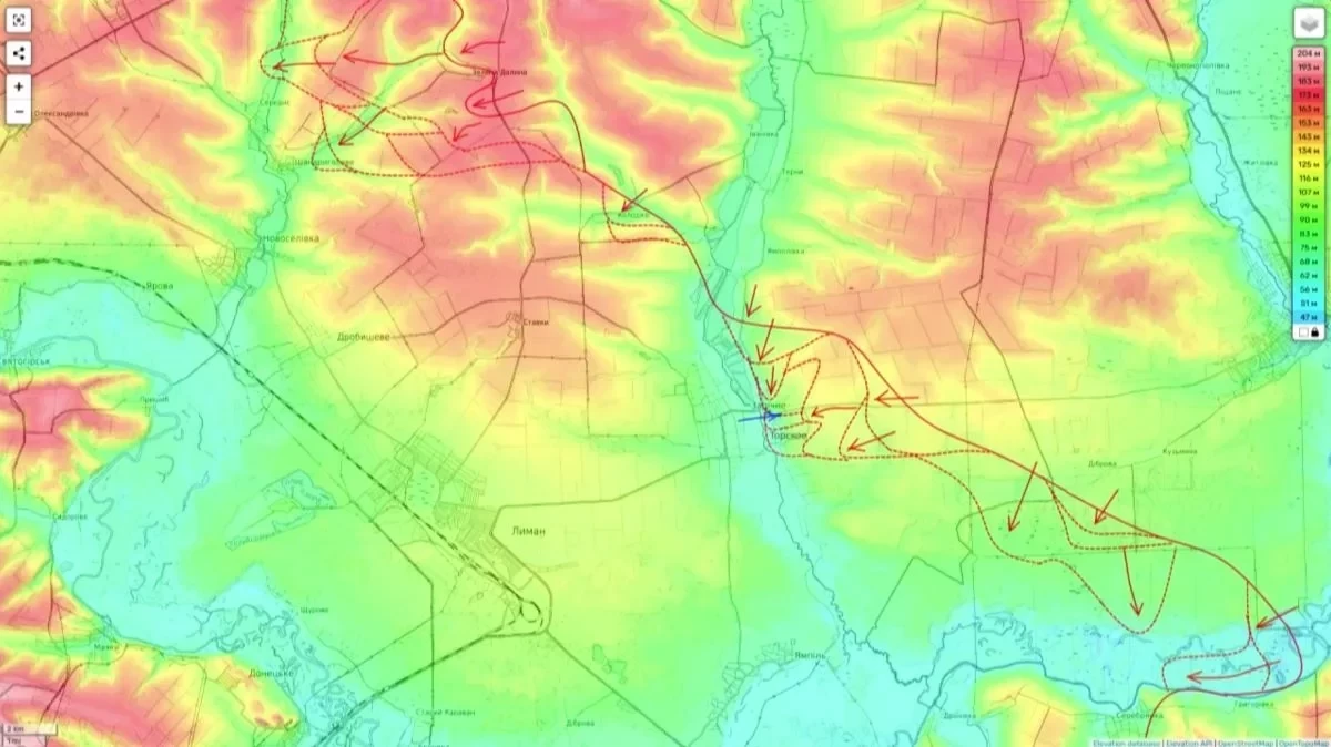 В свою очередь на Лиманском направлении части 25-й армии добились значительного тактического успеха, полностью освободив Торское и в значительной степени окружив украинскую группировку в Кременных лесах - позициях, которые наносили серьезный урон ВС РФ на протяжении двух лет. Переправившись через реку, российские силы завязали бои в Заречном, где шли интенсивные штурмовые действия.