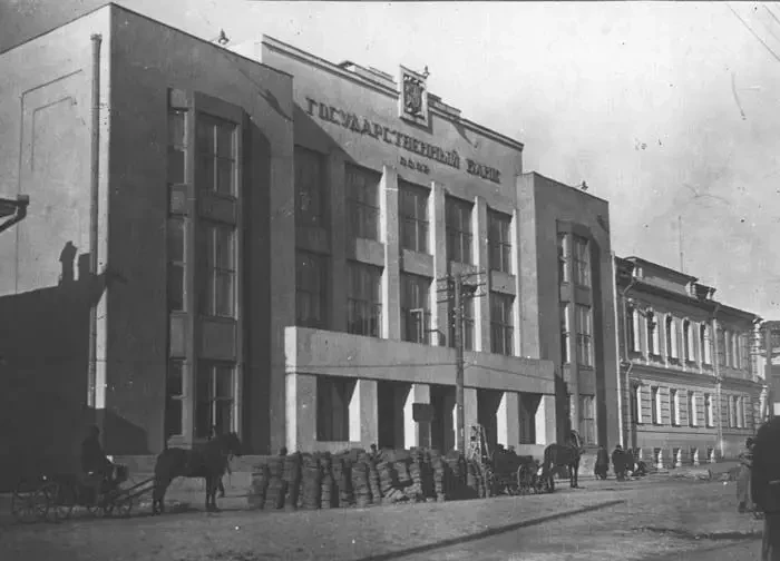Здание Госбанка СССР в Златоусте в стиле модного в 1920-х годах конструктивизма