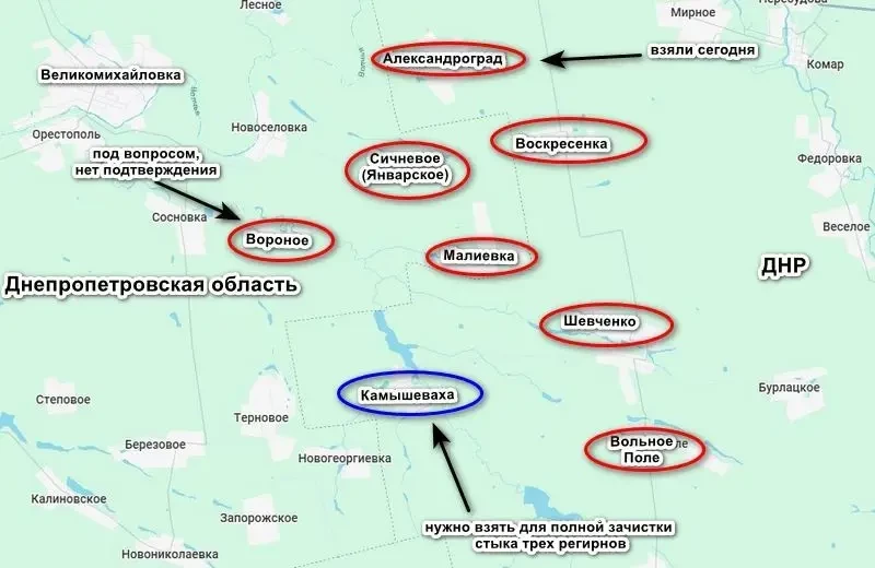 После освобождения Александрограда под контролем ВСУ на стыке трех регионов остается только Камышеваха. Ее взятие поставит точку на освобождении этого угла в ДНР, дальше только Запорожская и Днепропетровская области.