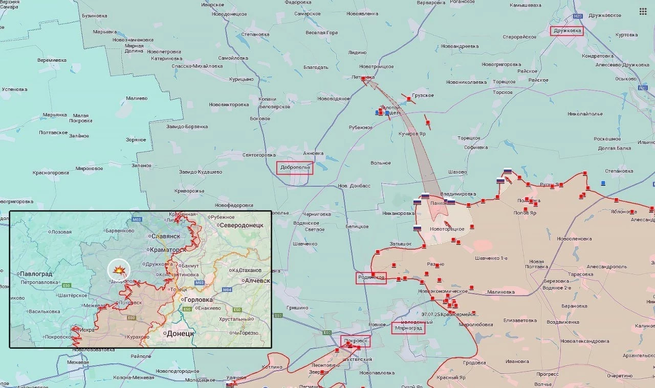 На Покровском участке, в Родинском, продолжаются упорные бои, противник удерживает большую часть города. Севернее ВСУ наносят удары в районе Никаноровки и Нового Шахово, а также со стороны Маяка, но без успеха. ВС РФ закрепились за восточную часть Золотого Колодезя и стараются зайти малыми группами в южную часть Петровки, что севернее дороги на Краматорск.