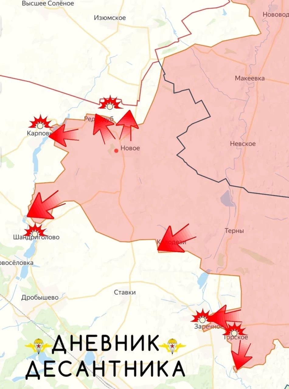 На Харьковском участке тяжёлые бои в южной части Волчанска и западнее Синельниково. Противник стянул свежие резервы и пытается вернуть себе контроль над южной частью города. В районе Хатнего есть тактические успехи.